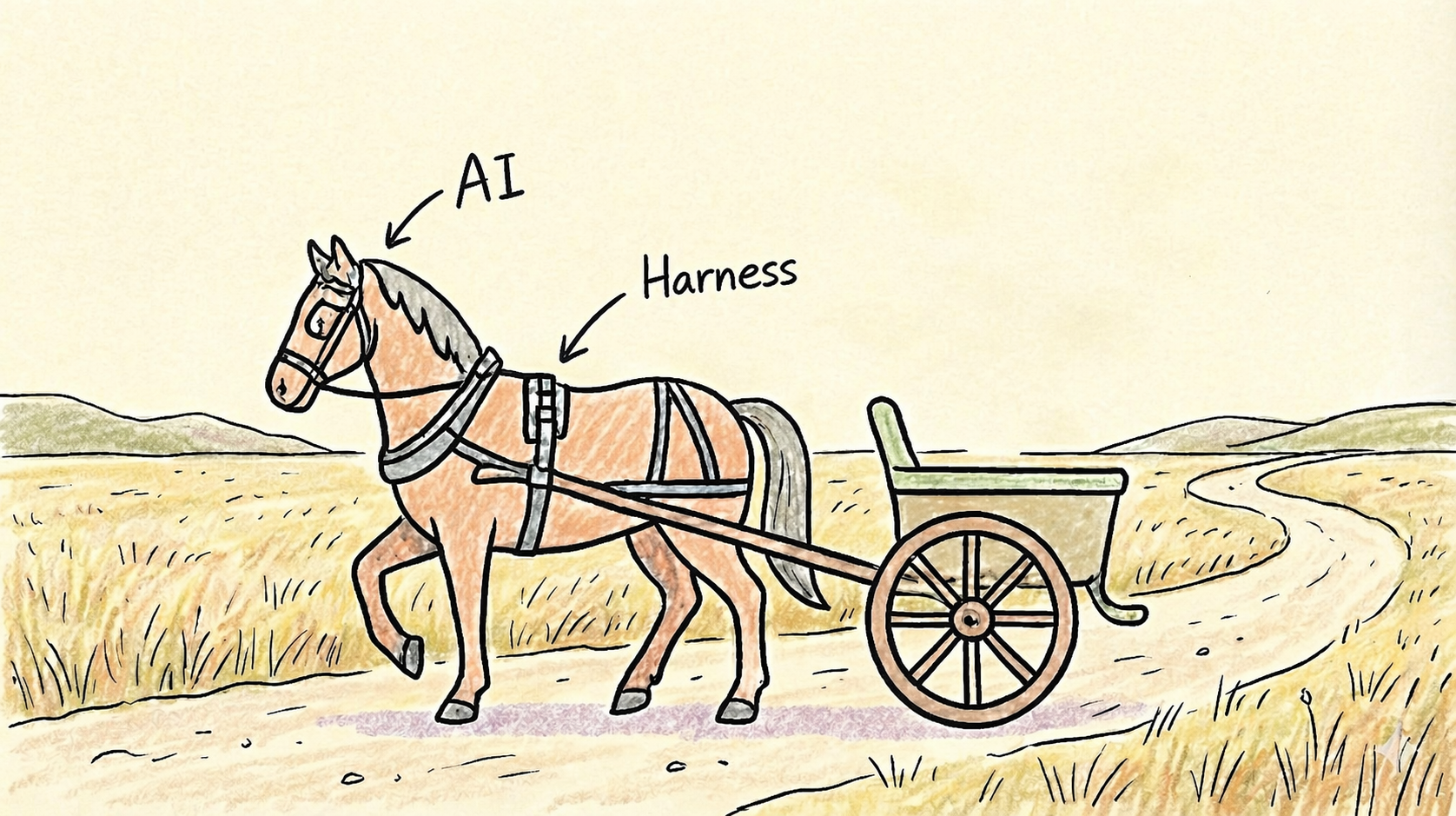 The word "harness" originally refers to the tack used to control a horse—reins, a saddle, and so on—carrying the metaphor of a device that channels a powerful but unpredictable force in the right direction. In AI, harness engineering is the discipline of designing the entire control system that wraps around the powerful engine of an AI model.