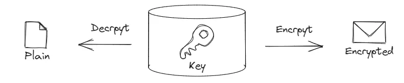 過去の対称鍵暗号化では、できるだけ安全だと思われるところに鍵を保管し、これを通じて暗号化、復号化を行いました。
