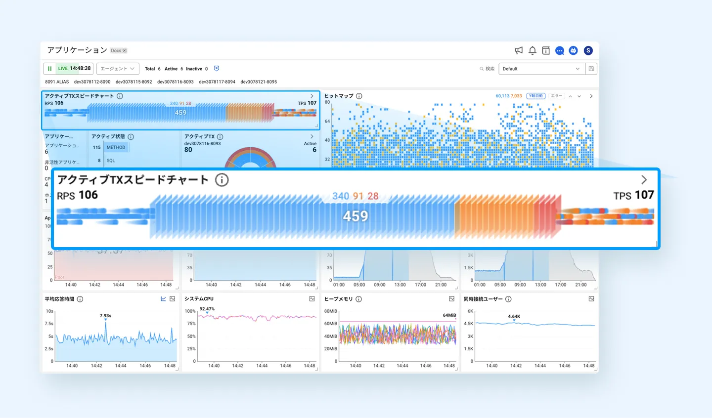 キム・ミンス: 私たちは連休や「ブラックフライデーセール」のような大型イベント時にはトラフィックが爆発的に増えるのですが、そんな時にWhaTapのヒットマップチャートを見ると認証APIの呼び出しや外部の負荷状況がひと目でわかります。また、様々な統計指標を活用して普段と比較し、どの区間で変化やボトルネックがあるかすぐ確認できます。ブラックフライデーセール期間中はWhaTapのダッシュボードを表示させ、常に一緒にモニタリングしています。