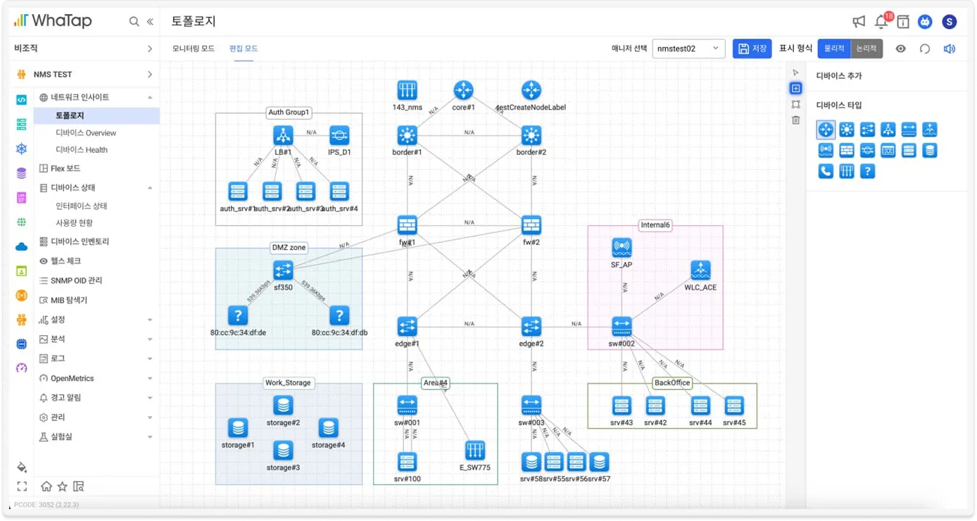 와탭 NMS는 SaaS 기반의 빠른 도입과 자동 확장성으로 다양한 네트워크 장비를 통합 모니터링하며,