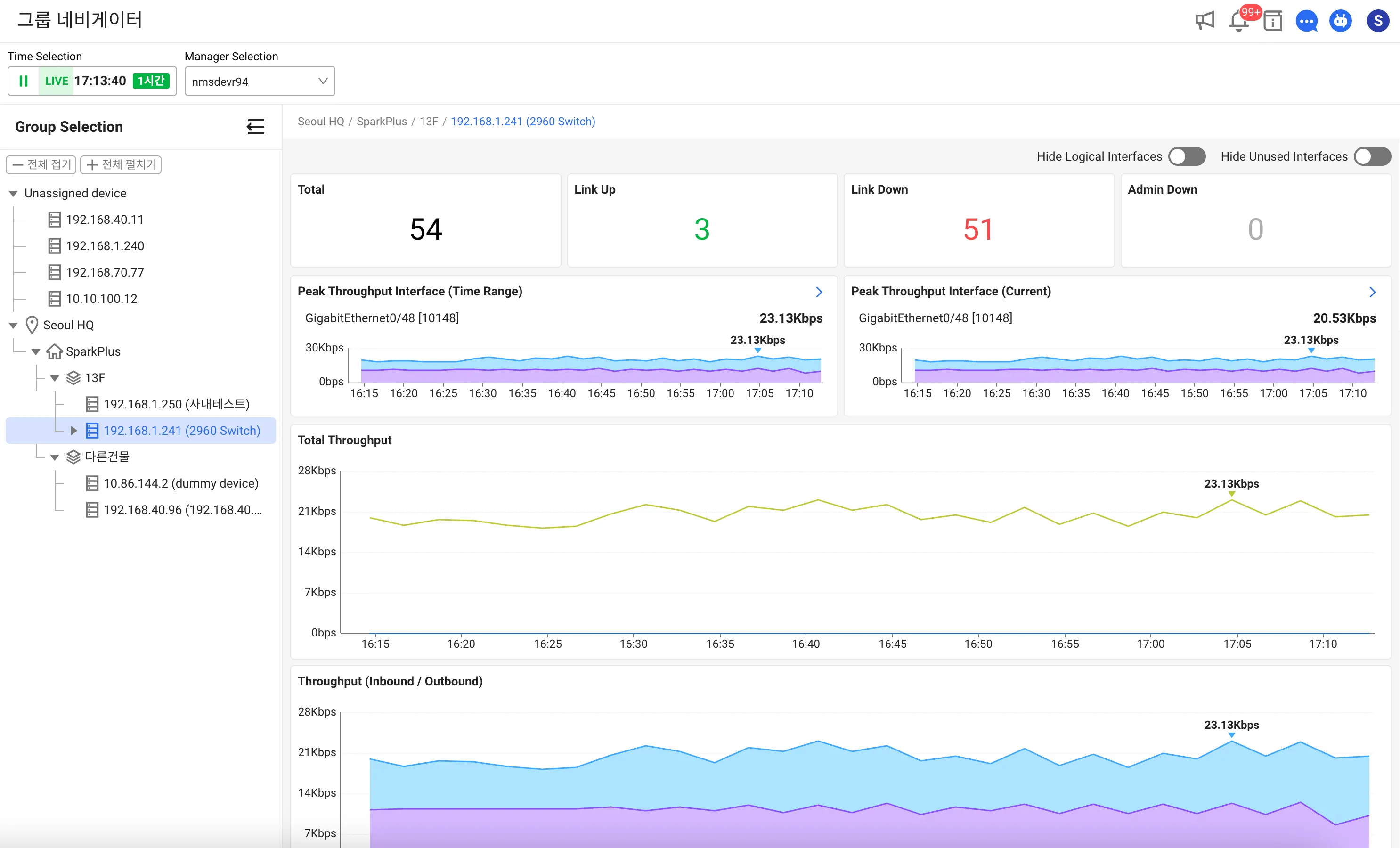 네트워크 토폴로지를 자동 탐색해 시각화하며, 장비 추가나 환경 변화에도 유연하게 대응합니다. 또한 Drag & Drop 기반 편집과 실시간 이벤트 경고 연동으로 운영 효율성과 장애 대응 속도를 더욱 높일 수 있습니다.
