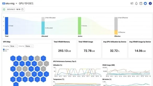 와탭랩스는 ‘AI 네이티브 옵저버빌리티’ 전략의 첫 단계로 GPU 활용률부터 온도·전력·MIG·쿠버네티스 연계까지 통합 관측하는 GPU 모니터링 서비스를 출시해, 고가의 AI 인프라 자산을 효율적으로 최적화하고 운영 가시성을 강화했다.