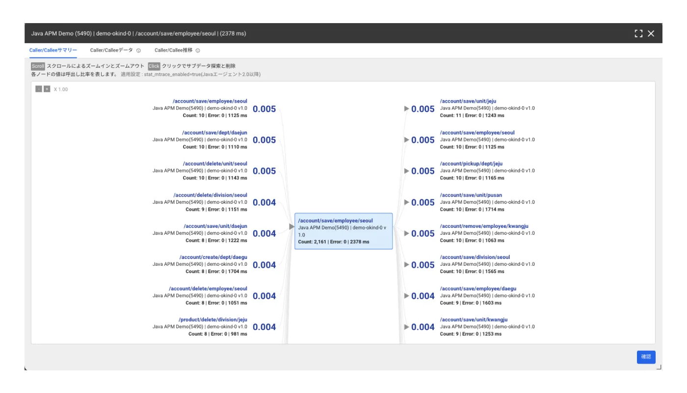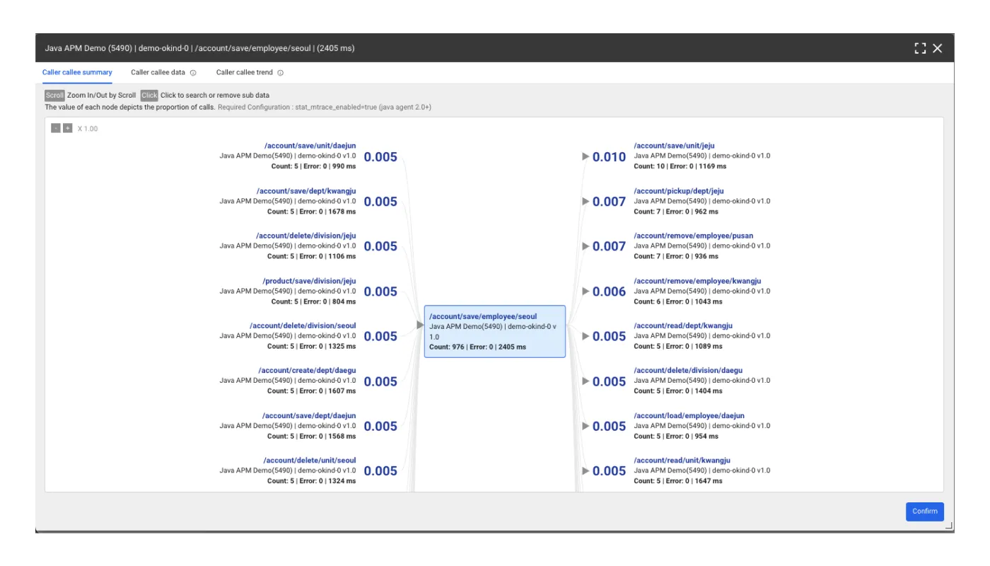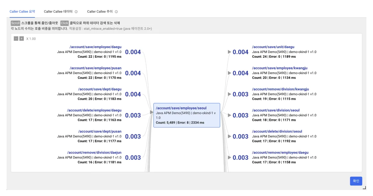 복잡한 호출관계의 트랜잭션을 보다 쉽게 이해할 수 있는 연계 추적 분석 기능을 제공합니다.