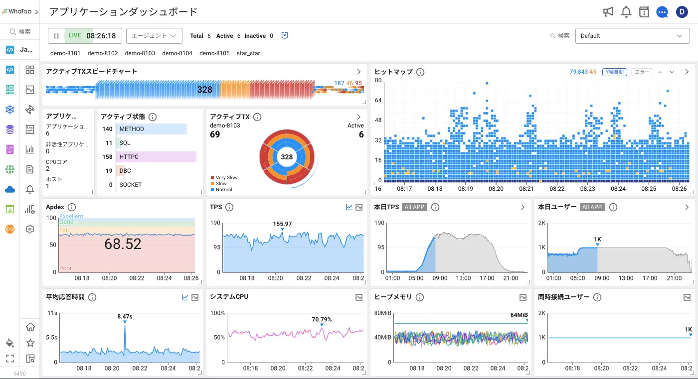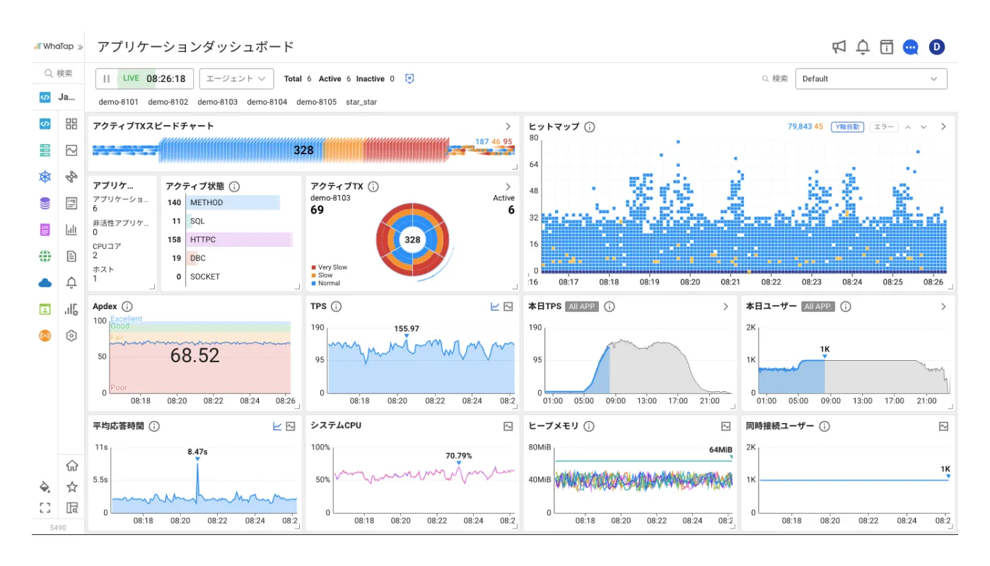 SQL, Http Call은 물론 Method 레벨까지 추척할 수 있으며 와탭만의 “액티브 스택” 기능으로 번거로운 프로파일 설정 없이 Method 레벨을 분석할 수 있습니다.
