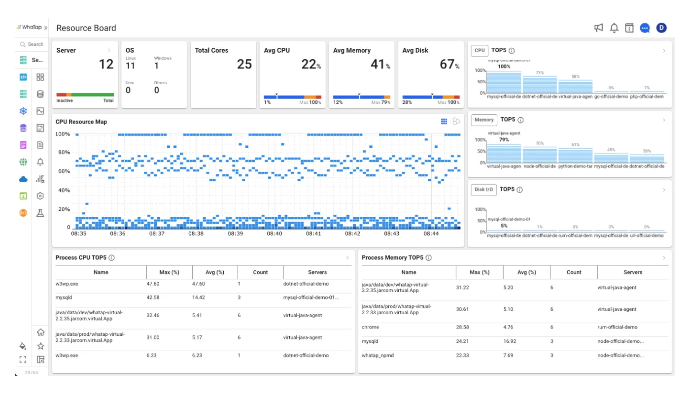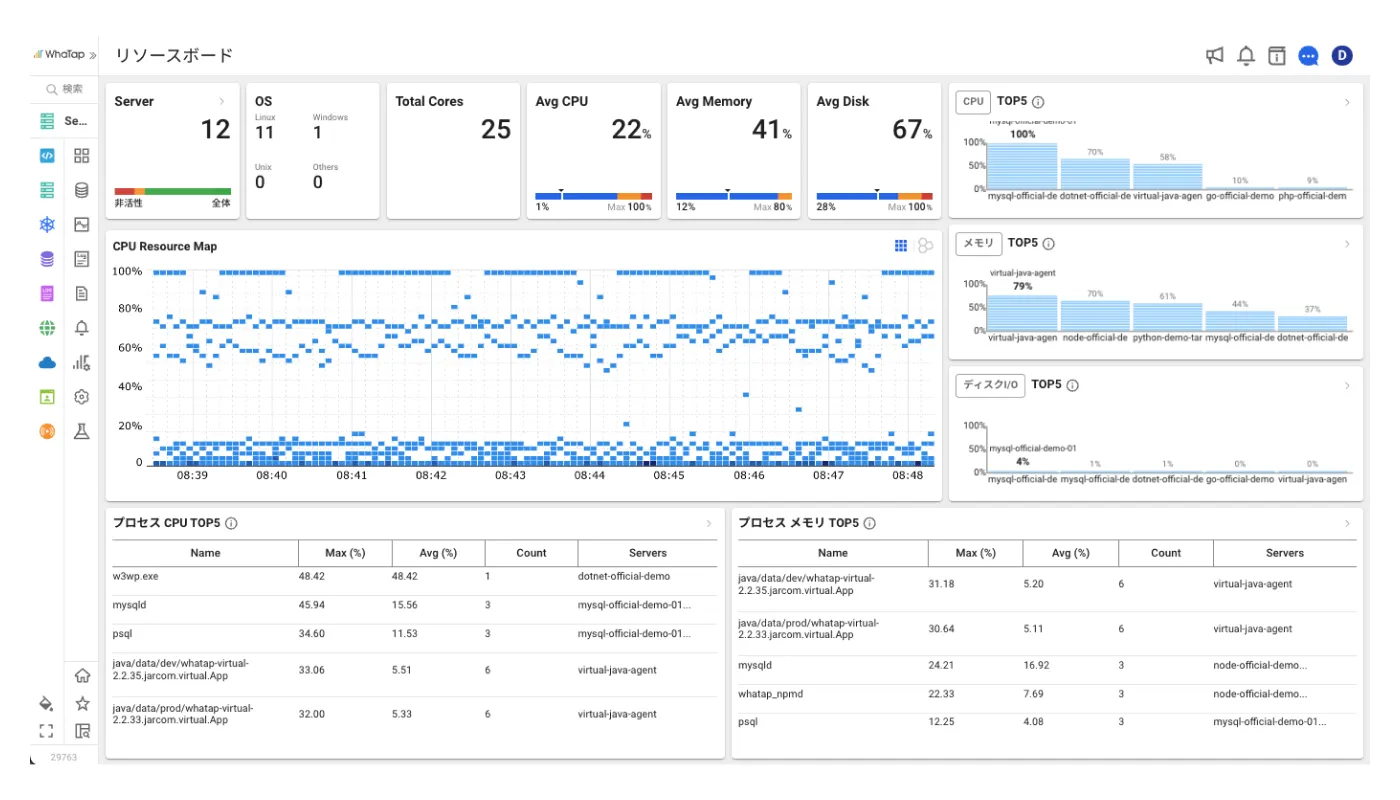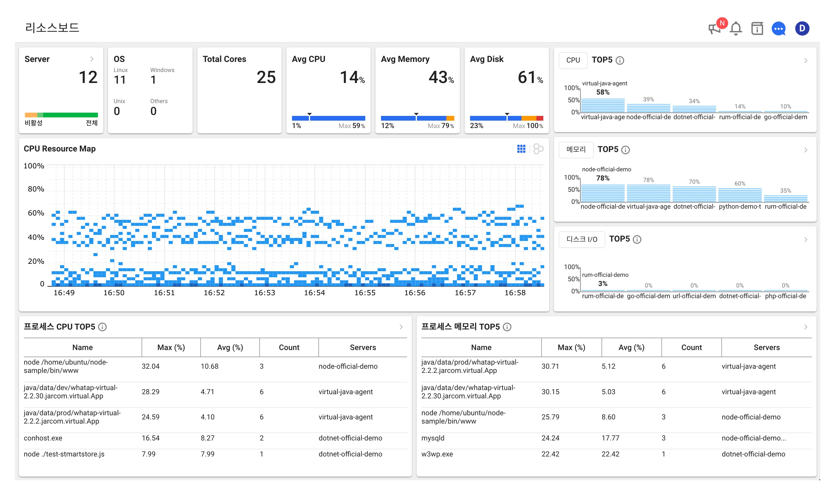 운영 중인 시스템의 전체 규모 및 전체 자원 상황을 한 눈에 확인할 수 있습니다.