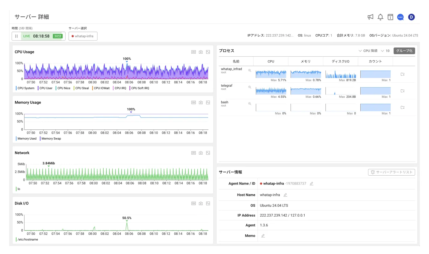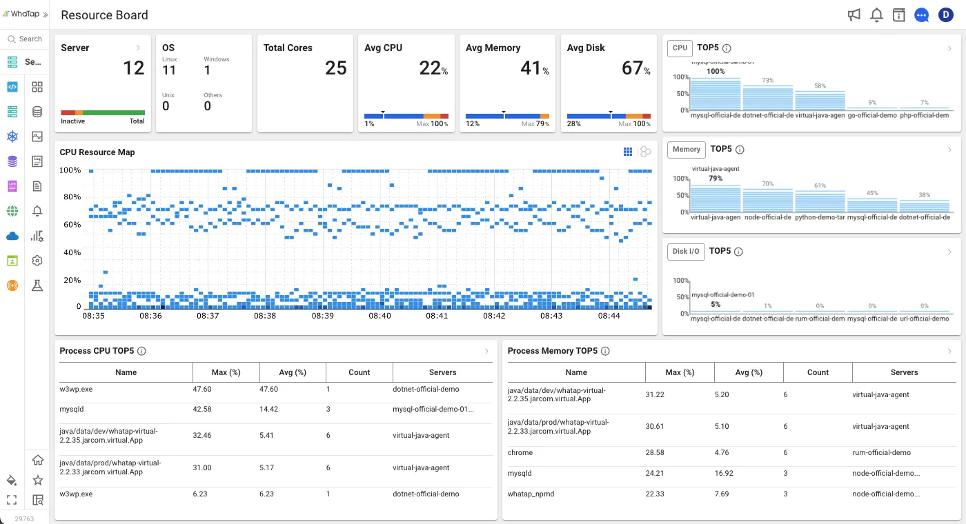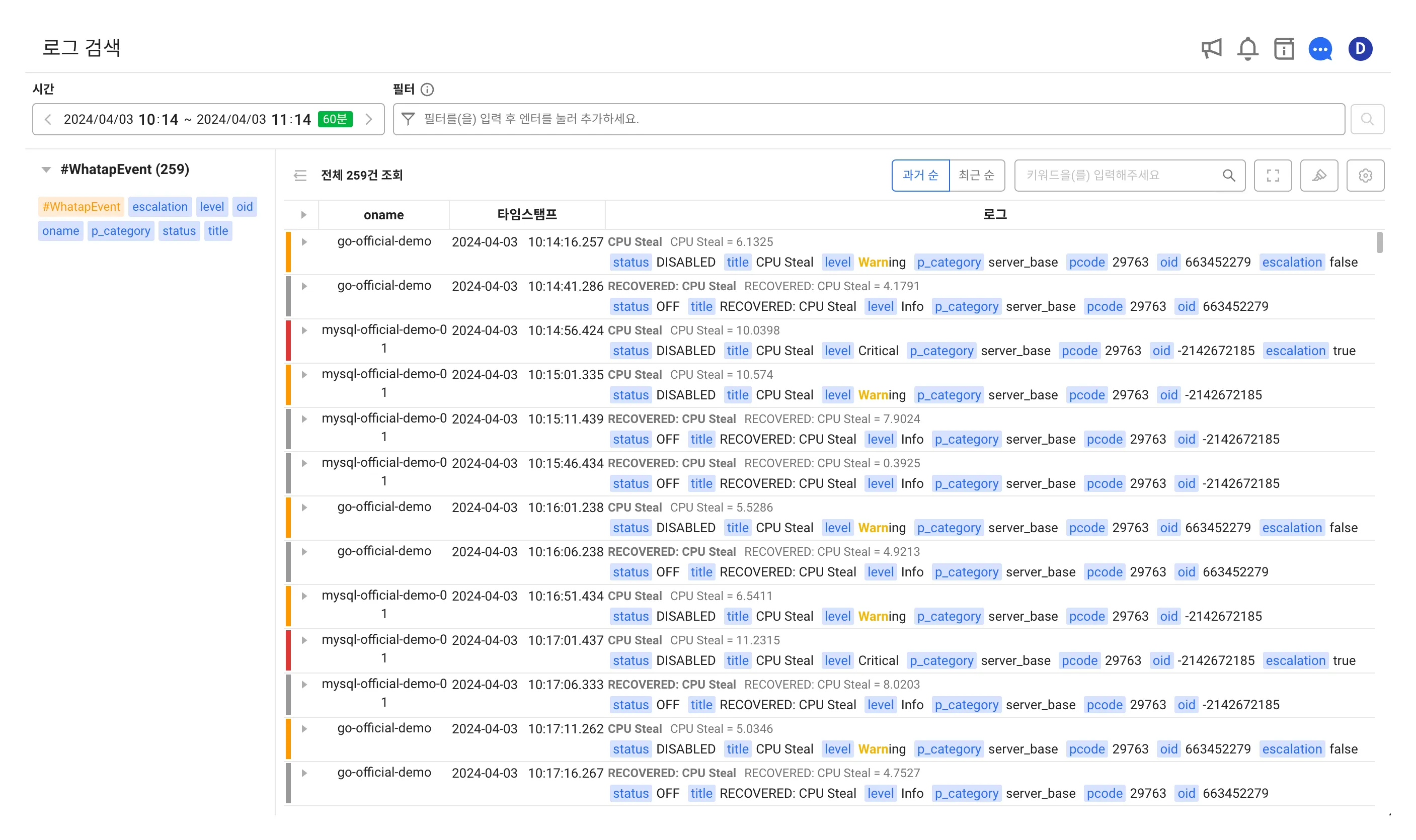 수집된 CPU Steal Time, Disk IO Saturation, 클라우드 자산 지표 기반으로 데이터를 분석할 수 있습니다.